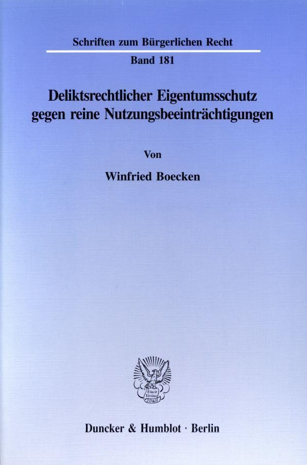 Deliktsrechtlicher Eigentumsschutz Gegen Reine Nutzungsbeeintrachtigungen (German Edition) full version