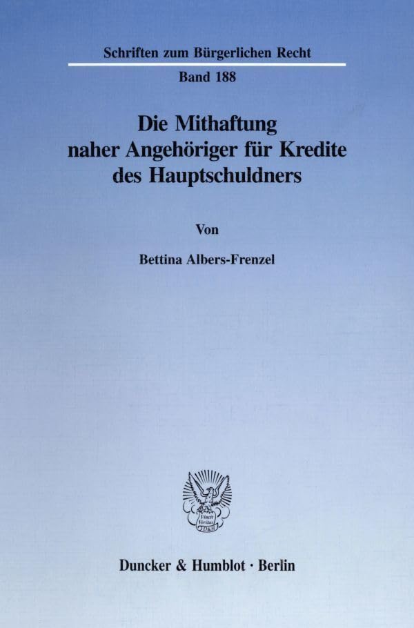 Die Mithaftung Naher Angehoriger Fur Kredite Des Hauptschuldners (Schriften Zum Burgerlichen Recht, 188) (German Edition) full version