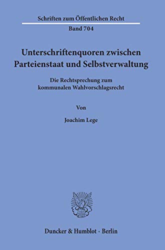 Unterschriftenquoren Zwischen Parteienstaat Und Selbstverwaltung: Die Rechtsprechung Zum Kommunalen Wahlvorschlagsrecht (Schriften Zum Offentlichen Recht, 704) (German Edition) full version