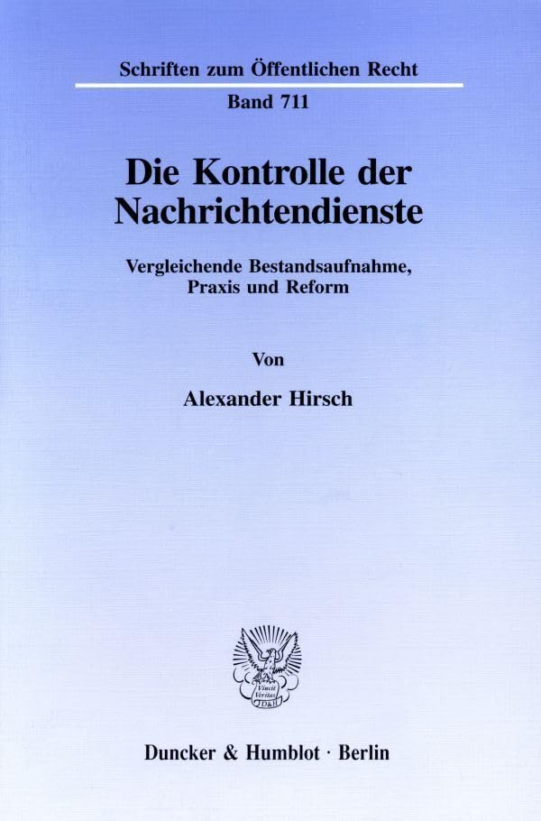 Die Kontrolle Der Nachrichtendienste: Vergleichende Bestandsaufnahme, PRAXIS Und Reform (Schriften Zum Offentlichen Recht, 711) (German Edition) full version