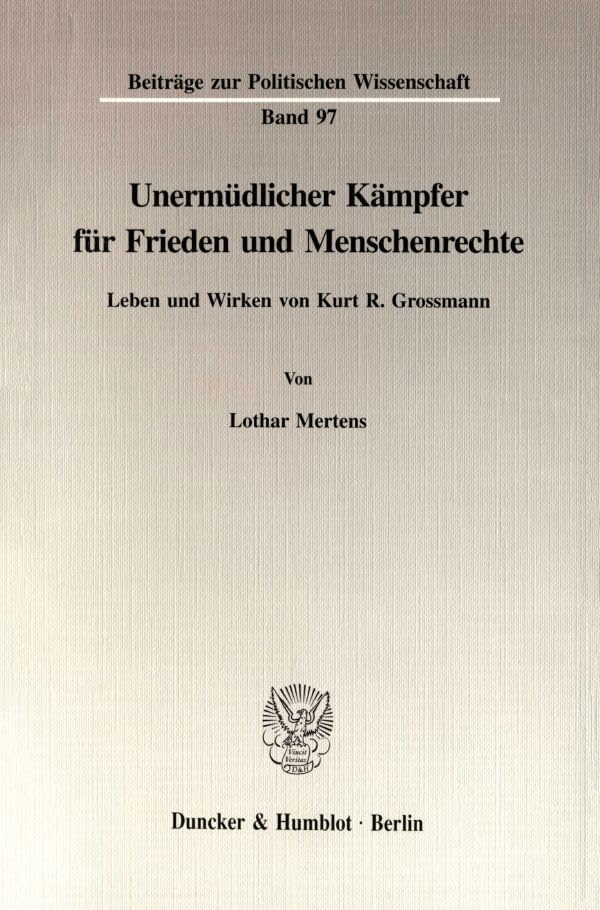 Unermudlicher Kampfer Fur Frieden Und Menschenrechte: Leben Und Wirken Von Kurt R. Grossmann (Beitrage Zur Politischen Wissenschaft, 97) (German Edition) full version