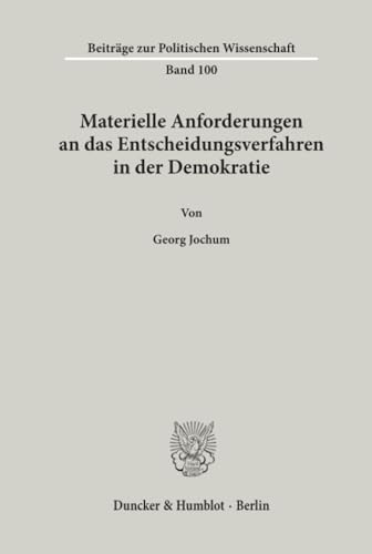 Materielle Anforderungen an Das Entscheidungsverfahren in Der Demokratie (Beitrage Zur Politischen Wissenschaft, 100) (German Edition) full version