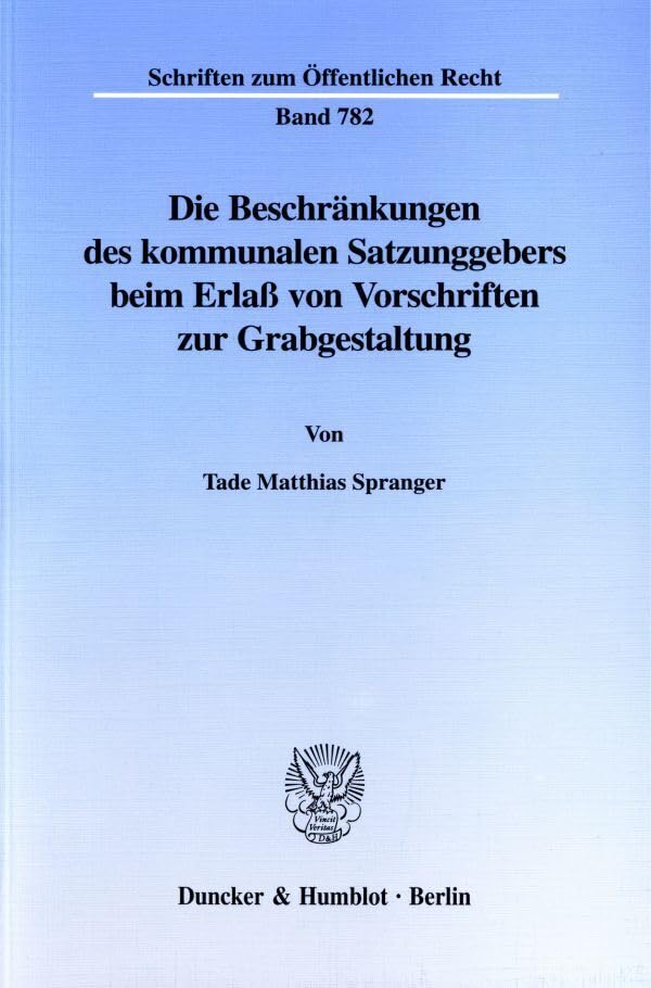 Die Beschrankungen Des Kommunalen Satzungsgebers Beim Erlass Von Vorschriften Zur Grabgestaltung (Schriften Zum Offentlichen Recht, 782) (German Edition) full version
