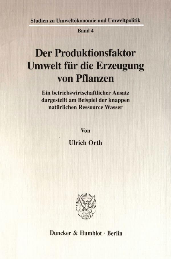 Der Produktionsfaktor Umwelt Fur Die Erzeugung Von Pflanzen: Ein Betriebswirtschaftlicher Ansatz Dargestellt Am Beispiel Der Knappen Naturlichen ... Und Umweltpolitik, 4) (German Edition) full version