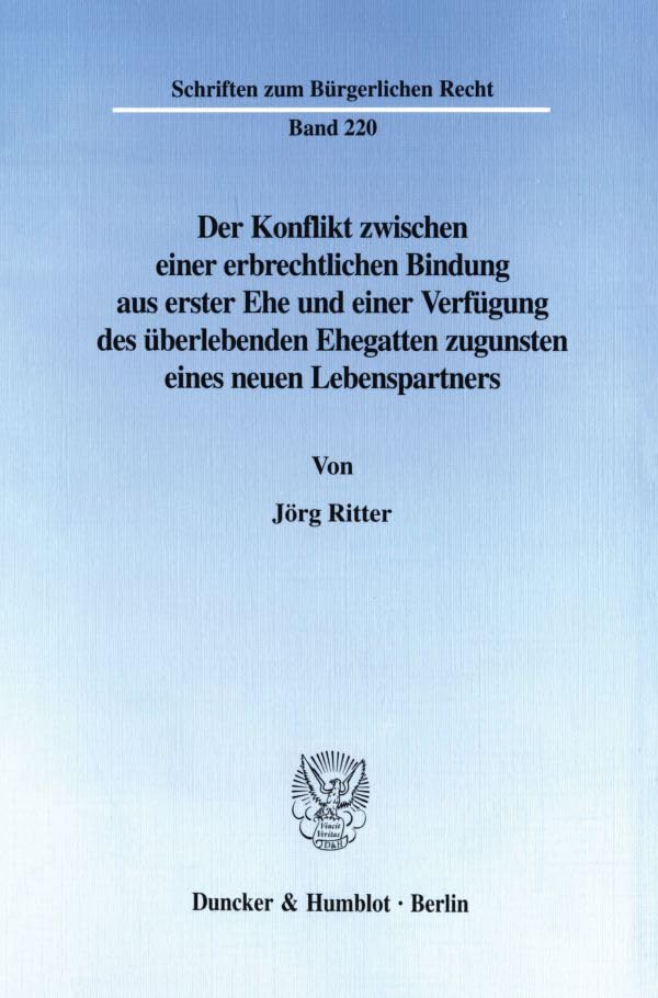 You are about to access our book library "Der Konflikt Zwischen Einer Erbrechtlichen Bindung Aus Erster Ehe Und Einer Verfugung Des Uberlebenden Ehegatten Zugunsten Eines Neuen Lebenspartners ... Zum Burgerlichen Recht, 220) (German Edition) full version"