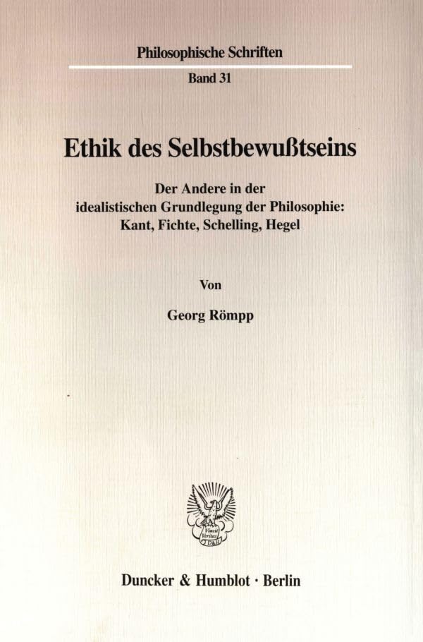 Ethik Des Selbstbewusstseins: Der Andere in Der Idealistischen Grundlegung Der Philosophie: Kant, Fichte, Schelling, Hegel (Philosophische Schriften,) (German Edition) full version