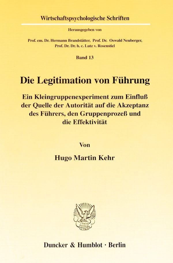 You are about to access our book library "Die Legitimation von Führung. Ein Kleingruppenexperiment zum Einfluß der Quelle der Autorität auf die Akzeptanz des Führers, den Gruppenprozeß und die ... (Wirtschaftspsychologische Schriften; WIS 13) full version"
