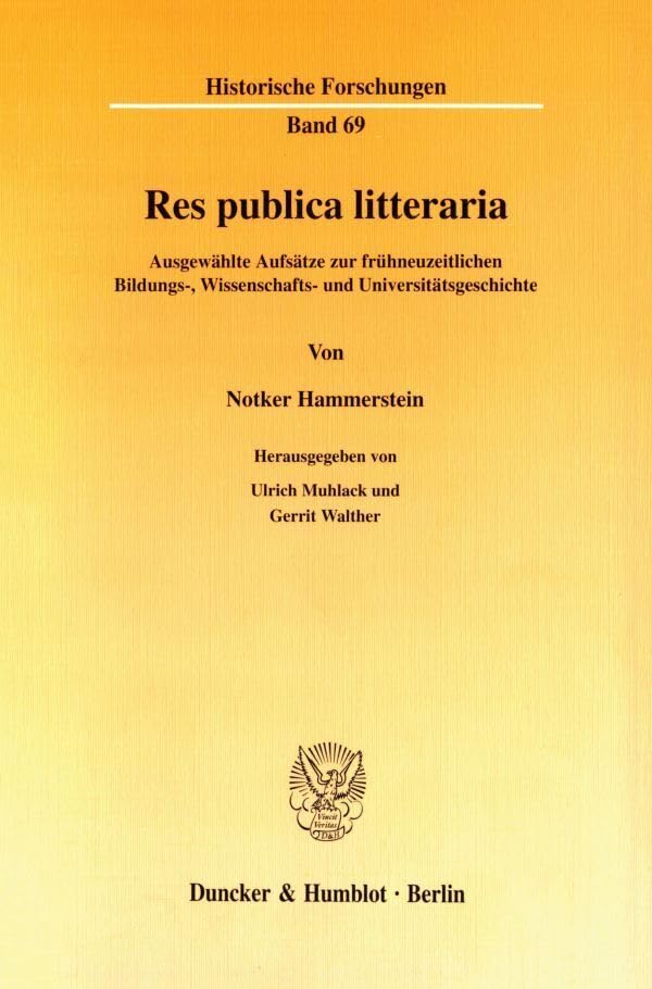 Res Publica Litteraria: Ausgewahlte Aufsatze Zur Fruhneuzeitlichen Bildungs, Wissenschafts Und Universitatsgeschichte. Hrsg. Von Ulrich Muhlack / ... Forschungen, 69) (German Edition) full version