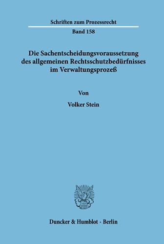 Die Sachentscheidungsvoraussetzung Des Allgemeinen Rechtsschutzbedurfnisses Im Verwaltungsprozess (Schriften Zum Prozessrecht, 158) (German Edition) full version