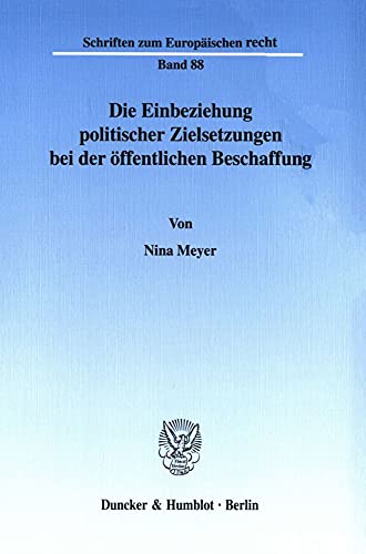 Die Einbeziehung Politischer Zielsetzungen Bei Der Offentlichen Beschaffung: Zur Zulassigkeit Der Verwendung Sogenannter 'Beschaffungsfremder ... Zum Europaischen Recht) (German Edition) full version