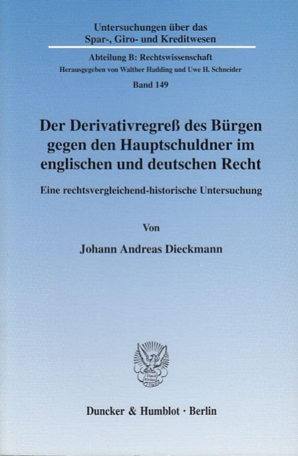 Der Derivativregress Des Burgen Gegen Den Hauptschuldner Im Englischen Und Deutschen Recht: Eine Rechtsvergleichend-historische Untersuchung ... B: Rechtswissenschaft, 149) (German Edition) full version