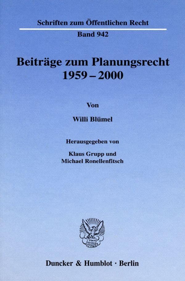 Beitrage Zum Planungsrecht 1959-2000: Hrsg. Von Klaus Grupp / Michael Ronellenfitsch (Schriften Zum Offentlichen Recht) (German Edition) full version