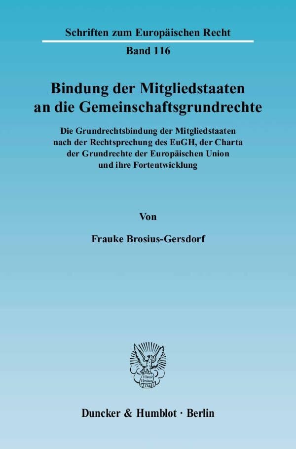 You are about to access our book library "Bindung Der Mitgliedstaaten an Die Gemeinschaftsgrundrechte: Die Grundrechtsbindung Der Mitgliedstaaten Nach Der Rechtsprechung Des Eugh, Der Charta ... Und Ihre Fortentwicklung (German Edition) full version"