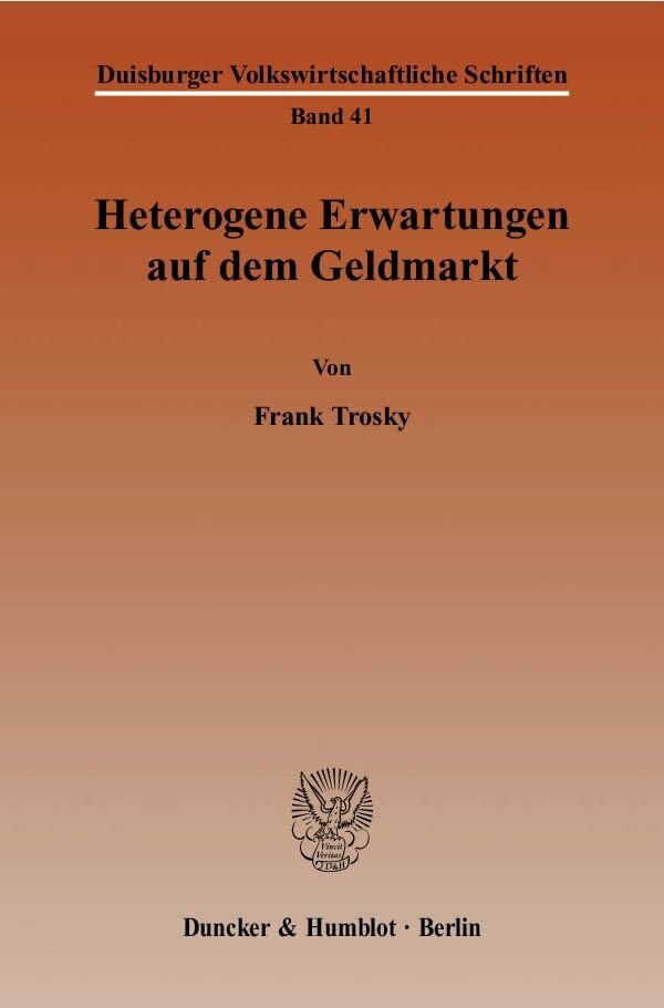 Heterogene Erwartungen Auf Dem Geldmarkt (Duisburger Volkswirtschaftliche Schriften) (German Edition) full version