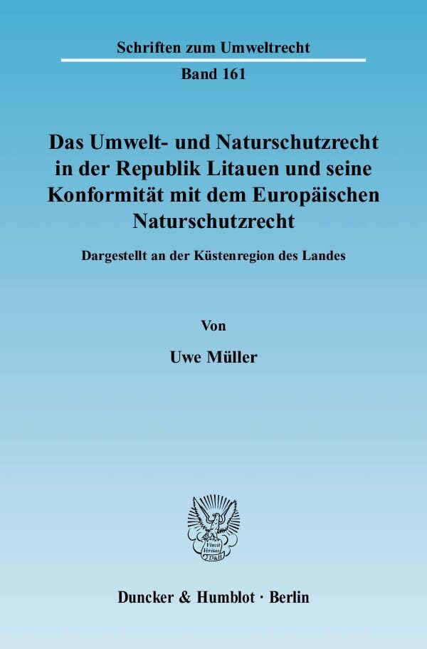 Das Umwelt Und Naturschutzrecht in Der Republik Litauen Und Seine Konformitat Mit Dem Europaischen Naturschutzrecht: Dargestellt an Der Kustenregion ... Zum Umweltrecht, 161) (German Edition) full version