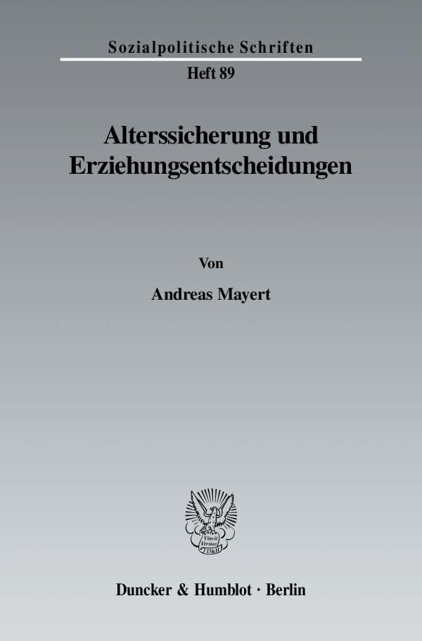 Alterssicherung Und Erziehungsentscheidungen (Sozialpolitische Schriften, 89) (German Edition) full version