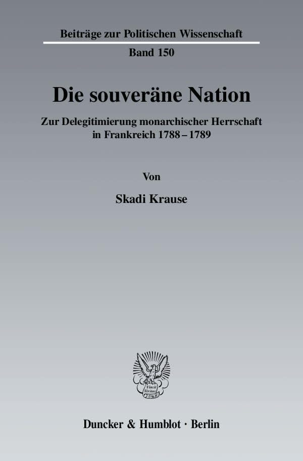 Die Souverane Nation: Zur Delegitimierung Monarchischer Herrschaft in Frankreich 1788 - 1789 (German Edition) full version