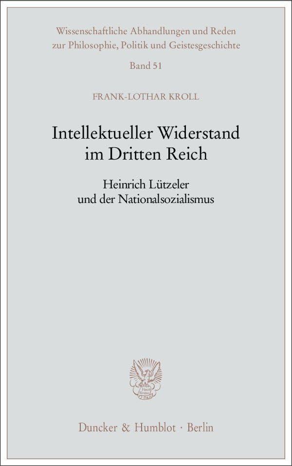 Intellektueller Widerstand Im Dritten Reich: Heinrich Lutzeler Und Der Nationalsozialismus (Wissenschaftliche Abhandlungen Und Reden Zur Philosophie, Po) (German Edition) full version