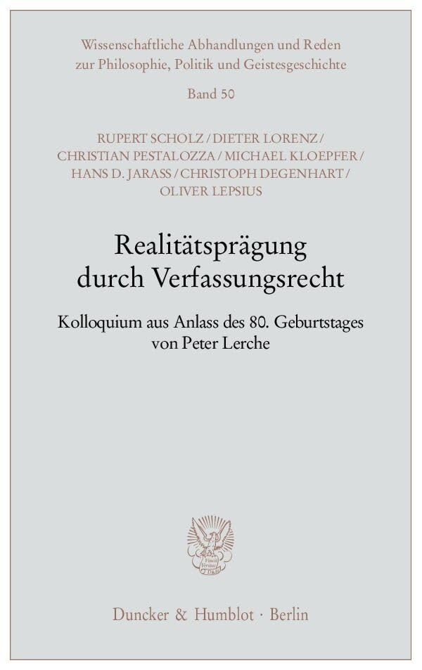 Realitatspragung Durch Verfassungsrecht: Kolloquium Aus Anlass Des 8. Geburtstages Von Peter Lerche (German Edition) full version