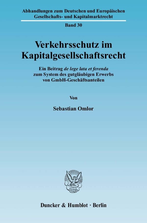 Verkehrsschutz Im Kapitalgesellschaftsrecht: Ein Beitrag de Lege Lata Et Ferenda Zum System Des Gutglaubigen Erwerbs Von Gmbh-Geschaftsanteilen (German Edition) full version