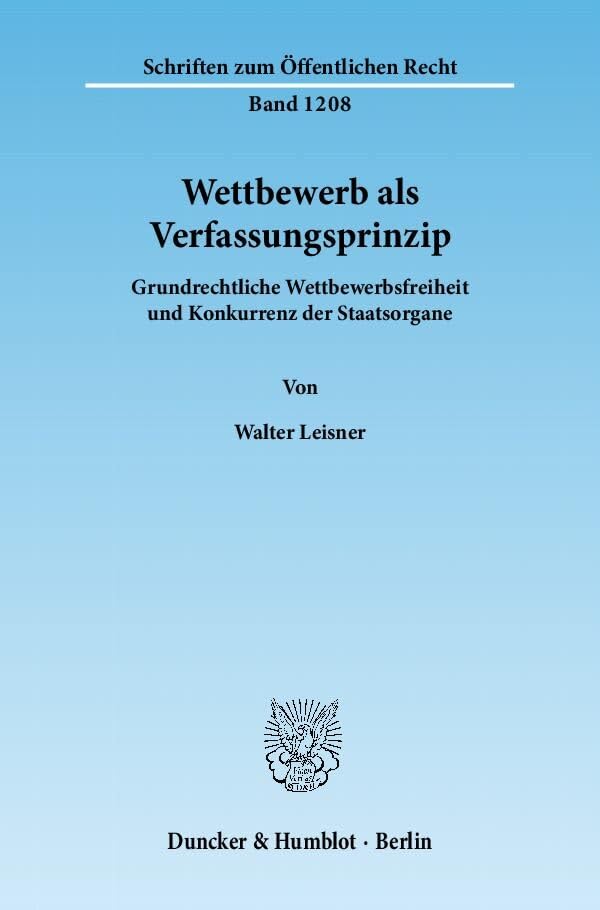 Wettbewerb Als Verfassungsprinzip: Grundrechtliche Wettbewerbsfreiheit Und Konkurrenz Der Staatsorgane (Schriften Zum Offentlichen Recht, 1208) (German Edition) full version