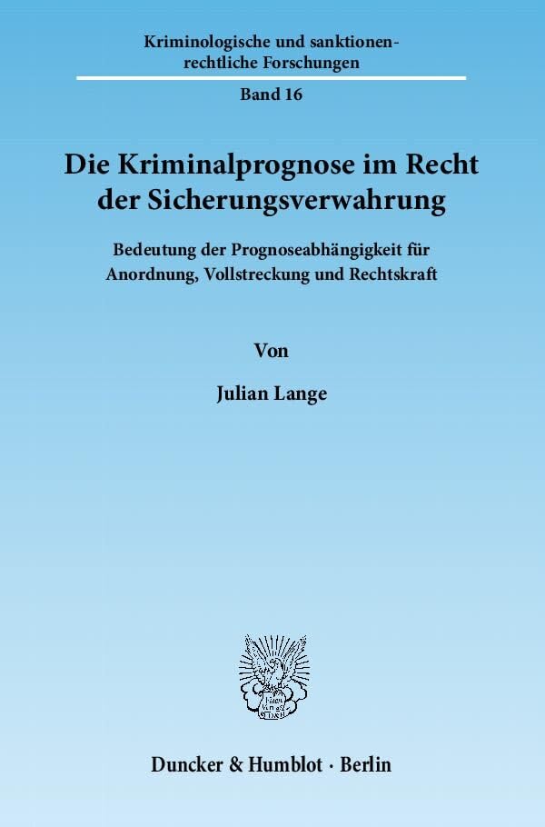 Die Kriminalprognose Im Recht Der Sicherungsverwahrung: Bedeutung Der Prognoseabhangigkeit Fur Anordnung, Vollstreckung Und Rechtskraft ... Forschungen, 16) (German Edition) full version