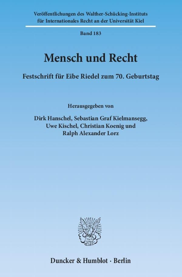 Mensch Und Recht: Festschrift Fur Eibe Riedel Zum 7. Geburtstag (Veroffentlichungen Des Walther-schucking-instituts Fur Internationales Recht an Der Universitat Kiel) (German Edition) full version