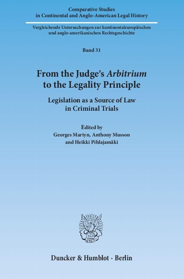 From the Judge's Arbitrium to the Legality Principle: Legislation As a Source of Law in Criminal Trials (Comparative Studies in Continental and Anglo-american Legal History, 31) full version