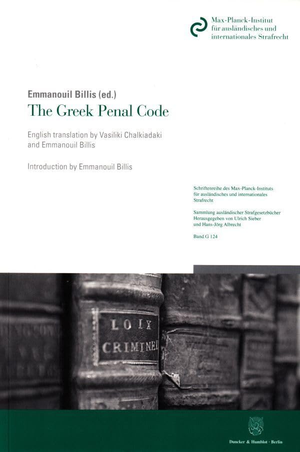 The Greek Penal Code: Law 1492 of 195 in conjunction with Presidential Decree 283 of 1985 as of 28 February 217. English translation by Vasiliki ... Strafgesetzbucher in Ubersetzung, 124) full version