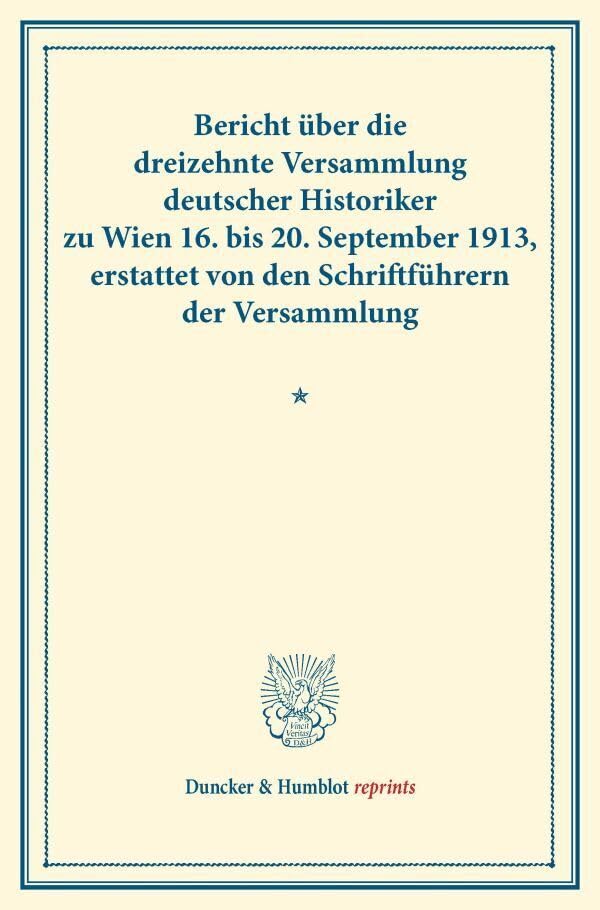 Bericht Uber Die Dreizehnte Versammlung Deutscher Historiker: Zu Wien 16. Bis 2. September 1913, Erstattet Von Den Schriftfuhrern Der Versammlung (Duncker & Humblot Reprints) (German Edition) full version