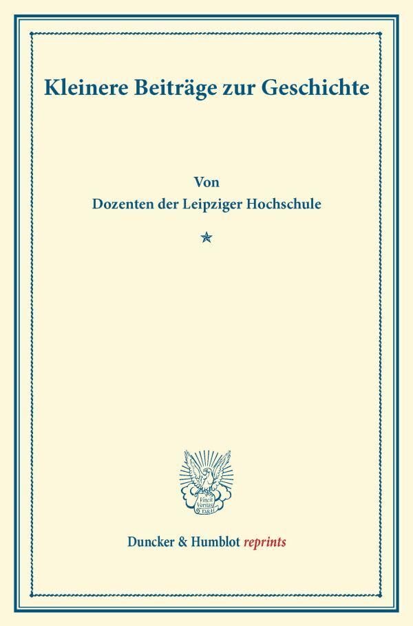 Kleinere Beitrage Zur Geschichte: Von Dozenten Der Leipziger Hochschule. Festschrift Zum Deutschen Historikertage in Leipzig, Ostern 1894 (Duncker & Humblot Reprints) (German Edition) full version