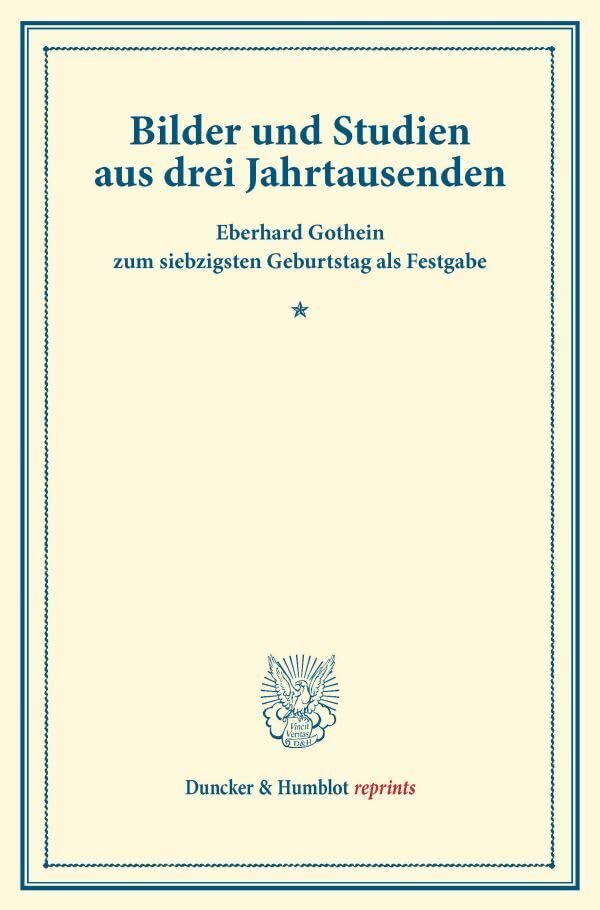 Bilder Und Studien Aus Drei Jahrtausenden: Eberhard Gothein Zum Siebzigsten Geburtstag ALS Festgabe (Duncker & Humblot Reprints) (German Edition) full version