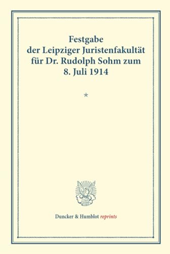 Festgabe Der Leipziger Juristenfakultat Fur Dr. Rudolph Sohm: Zum 8. Juli 1914 (Duncker & Humblot Reprints) (German Edition) full version