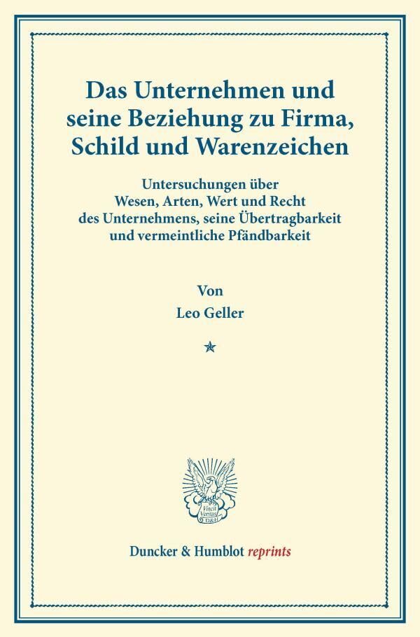 You are about to access our book library "Das Unternehmen Und Seine Beziehung Zu Firma, Schild Und Warenzeichen: Untersuchungen Uber Wesen, Arten, Wert Und Recht Des Unternehmens, Seine ... (Duncker & Humblot Reprints) (German Edition) full version"