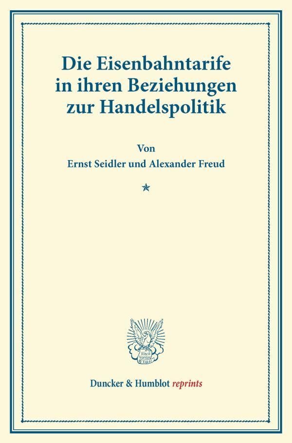 Die Eisenbahntarife in Ihren Beziehungen Zur Handelspolitik (Duncker & Humblot Reprints) (German Edition) full version