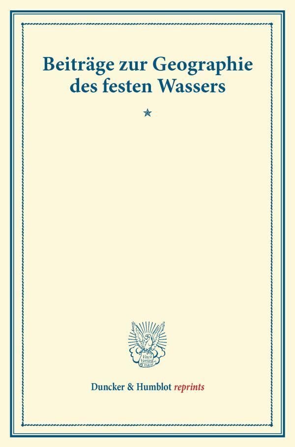 Beitrage Zur Geographie Des Festen Wassers: Wissenschaftliche Veroffentlichungen Des Vereins Fur Erdkunde Zu Leipzig (Duncker & Humblot Reprints, 1) (German Edition) full version