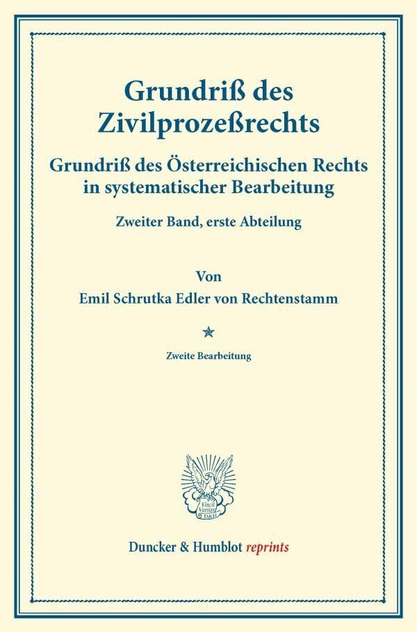 Grundriss Des Zivilprozessrechts: Grundriss Des Osterreichischen Rechts in Systematischer Bearbeitung. Zweiter Band, Erste Abteilung. Hrsg. Von August Finger / Otto Frankl full version