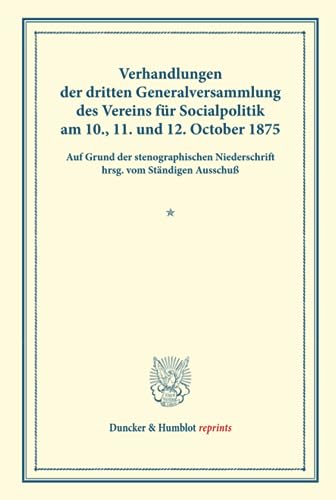 Verhandlungen Der Dritten Generalversammlung Des Vereins Fur Socialpolitik Am 10., 11. Und 12. October 1875: Auf Grund Der Stenographischen ... (Duncker & Humblot Reprints) (German Edition) full version