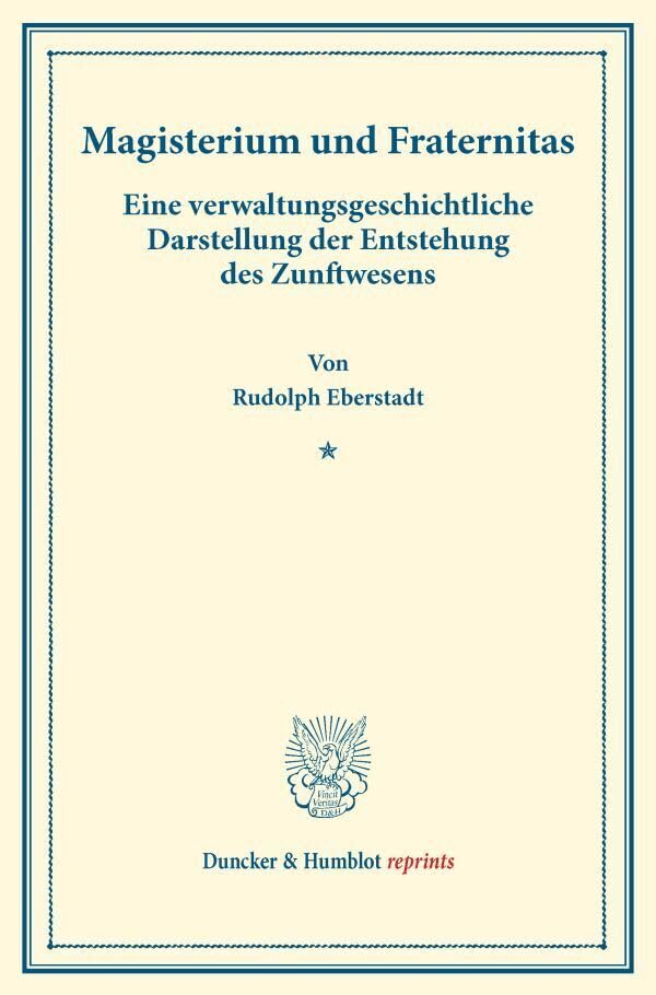 Magisterium Und Fraternitas: Eine Verwaltungsgeschichtliche Darstellung Der Entstehung Des Zunftwesens. Staats Und Socialwissenschaftliche Forschungen full version