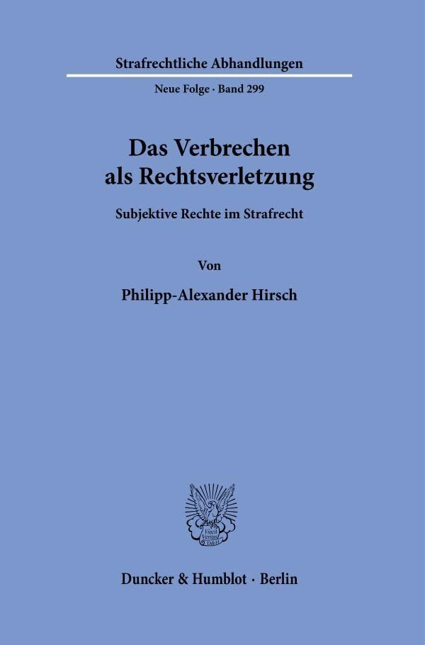 Das Verbrechen Als Rechtsverletzung: Subjektive Rechte Im Strafrecht (Strafrechtliche Abhandlungen, 299) (German Edition) full version