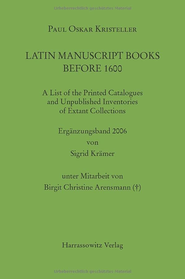 You are about to access our book library "Latin Manuscript Books Before 1600: A List of the Printed Catalogues and Unpublished Inventories of Extant Collections (Monumenta Germaniae Historica - Hilfsmittel, 23) (English and German Edition) full version"
