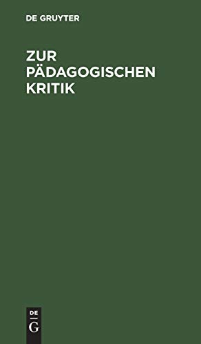 Zur Pädagogischen Kritik: Mit Besonderer Rücksicht Auf Bayern (German Edition) full version