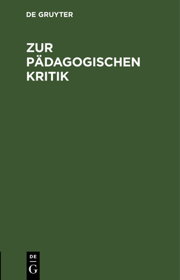 Zur P�dagogischen Kritik: Mit Besonderer R�cksicht Auf Bayern full version