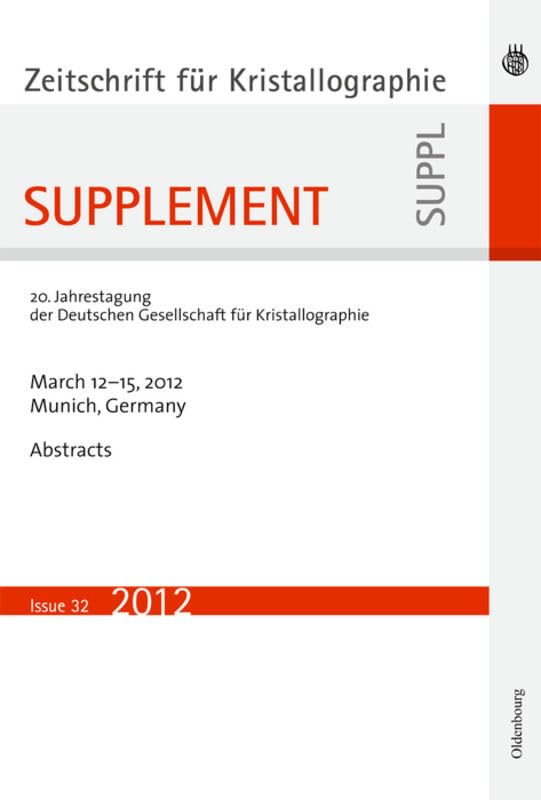 21. Jahrestagung Der Deutschen Gesellschaft Für Kristallographie; March 2013, Freiberg, Germany (Zeitschrift Für Kristallographie / Supplemente, 33) full version