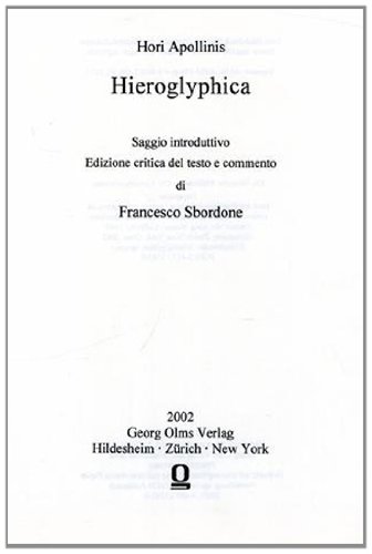 Hori Apollonis Hieroglyphica. Ed. critica di Francesco Sbordone. full version