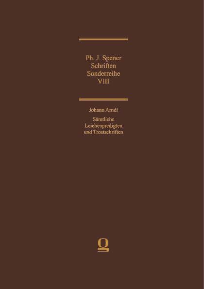 Johann Arndt: Samtliche Leichenpredigten Und Trostschriften: Philipp Jakob Spener: Schriften, Sonderreihe VIII = Johann Arndt-archiv V (German Edition) full version