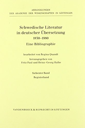 Schwedische Literatur Band 7: Registerband. Schwedische Originaltitel, Deutsche Titel, Ubersetzerregister, Register zu Nachtragen, ... WISSENSCH. ... Fur Geschichte) (German Edition) full version