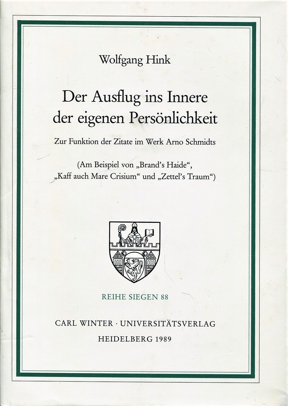 Der Ausflug ins Innere der eigenen Persönlichkeit. Zur Funktion der Zitate im Werk Arno Schmidts (Am Beispiel von "Brand's Haide", "Kaff auch Mare Crisium" und "Zettel's Traum") full version