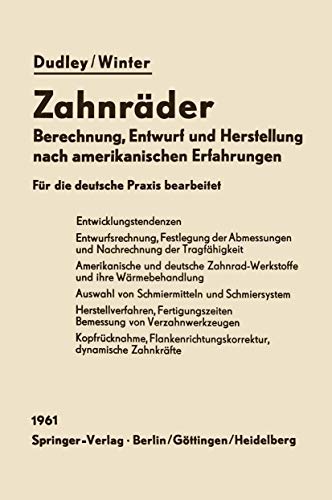 Zahnräder: Berechnung, Entwurf und Herstellung nach amerikanischen Erfahrungen (German Edition) full version