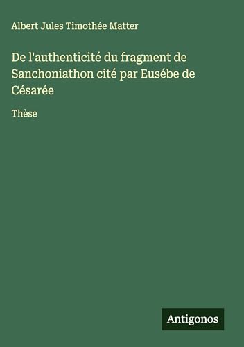 De l'authenticité du fragment de Sanchoniathon cité par Eusébe de Césarée: Thèse (French Edition) full version